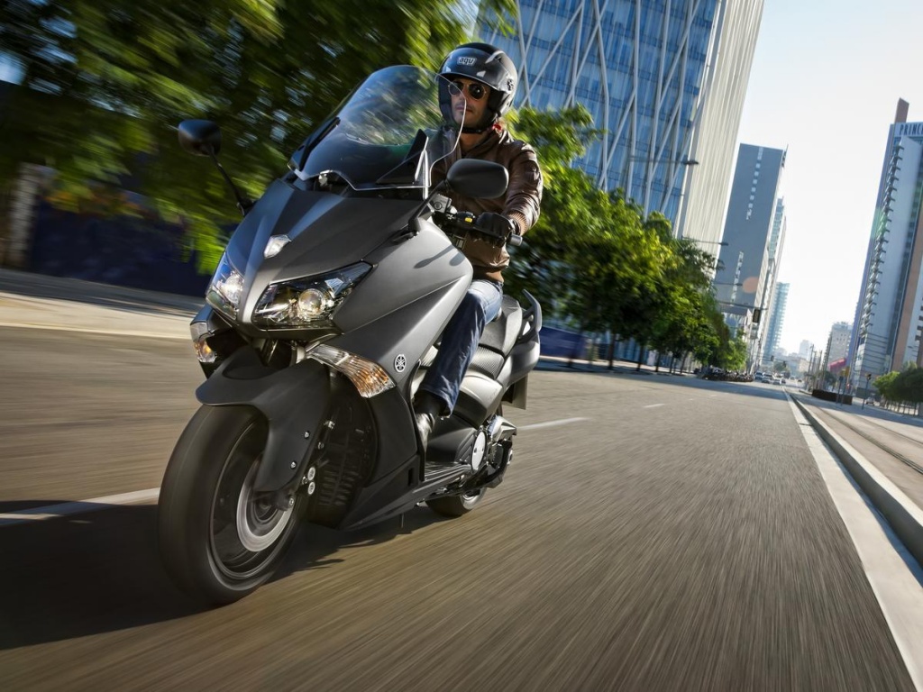 Новый скутер TMAX стал самым спортивным за всю свою историю. С ультрадинамичным силуэтом обтекателей он получил больше мощности, которая теперь сравнима с мотоциклетной, а также превосходный комфорт и управляемость. Благодаря новому двигателю рабочим объемом 530 см3, новой ременной главной передаче и облегченному шасси из алюминиевого сплава вы сможете насладиться лучшим на сегодняшний день ускорением при старте с места и улучшенной управляемостью, которая поможет «прошить» трафик в час-пик. Большой диаметр колес и отлично настроенная подвеска справятся с любыми дорогами. Новый TMAX 2012 модельного года можно отличить по угловатой приборной панели, новой фаре и новому, регулируемому по высоте ветровому стеклу.